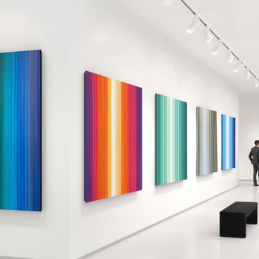 Pintada em tinta acrílica sobre tela, a série reúne obras em dimensões distintas, permitindo diferentes escalas de leitura e adaptação a variados contextos espaciais. Lines é uma investigação contínua sobre cor, espaço e presença — uma série que preserva sua identidade enquanto se transforma.